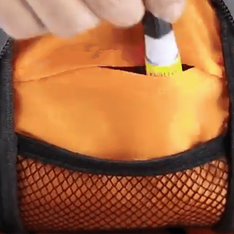 Possui espaço essenciais, para barras de energia, kits de reparo, kit de remendo, lubrificante para correntes, alavancas de pneus, mini-bomba, chaves, etc.